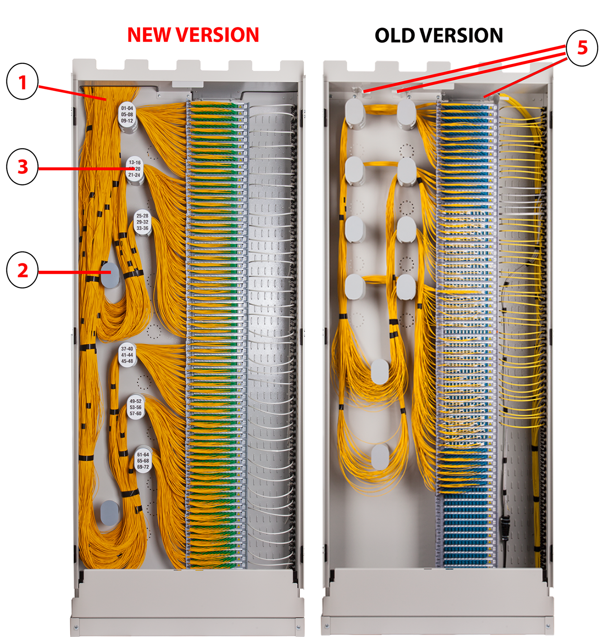 - The depth of the top entry for patchcords increased by 10mm